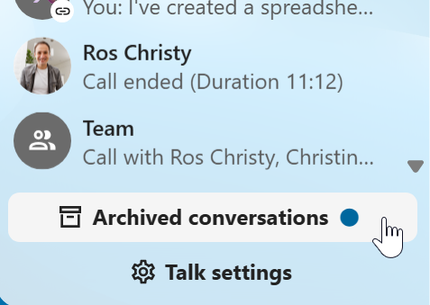 You can archive conversations that you no longer need to see in your main conversation list. When a conversation is archived, it will be moved to the Archived conversations section.