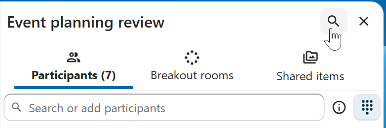In addition to global unified search, you can search for messages within a specific conversation. In the content sidebar of a conversation, click the search icon to open the search tab.