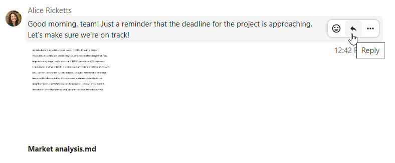 If a user becomes unavailable and set an out-of-office status in Personal settings > Availability, you will find additional information in this conversation, such as provided description, absence date, or their replacement person.